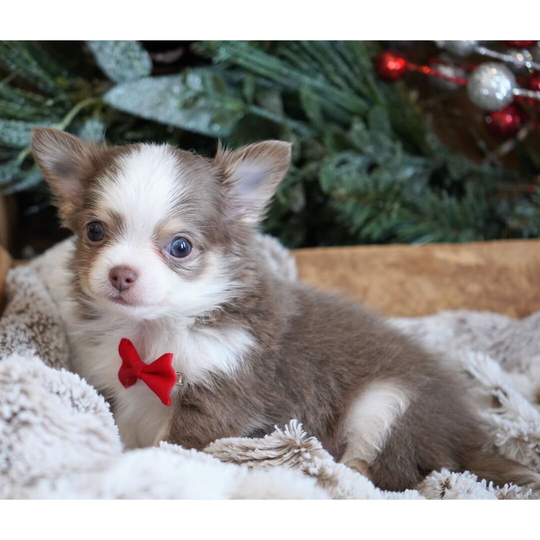 Purebred Chihuahua Puppies For Sale | Hi, I’m Barkley! I’m a 9-week-old male Chihuahua with a beautiful lilac & white coat, I’am ready to go home to my forever family now, I’m grown enough to leave my litter. When I reach my adult size, I should weigh between 5–8 lbs. I’m AKC registered. Everyone loves to pet me, and I don’t mind at all! I can lay there for hours soaking up every bit of affection. Purebred Chihuahua Puppies For Sale