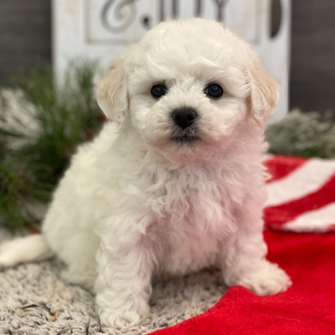 Hi, I’m Chip! I’m an 9-week-old female Bichon Frise with a beautiful white coat, I’m ready to go home to my forever family now; I’m grown enough to leave my litter. When I reach my adult size, I should weigh between 8–10 lbs. I’m AKC registered. My tail wags at the thought of meeting my forever family.