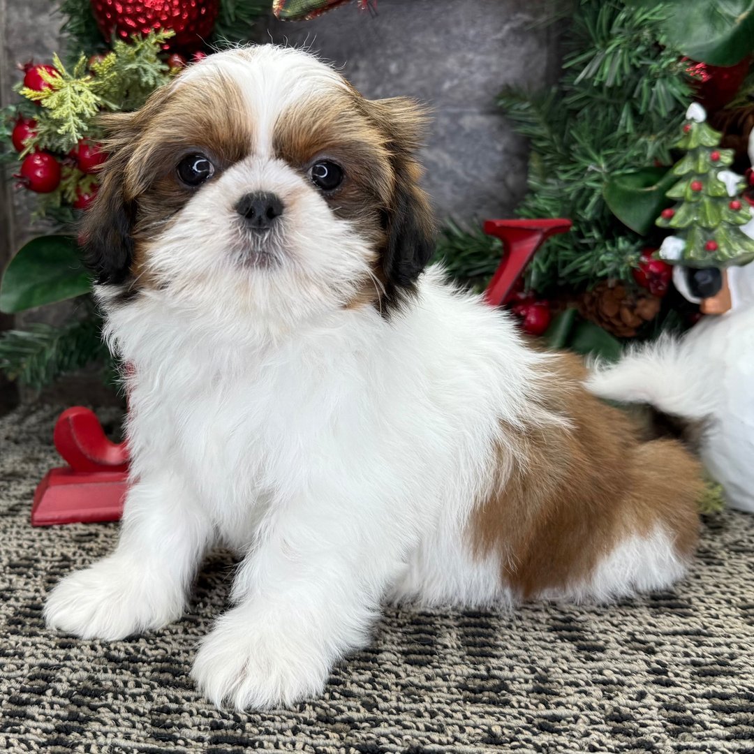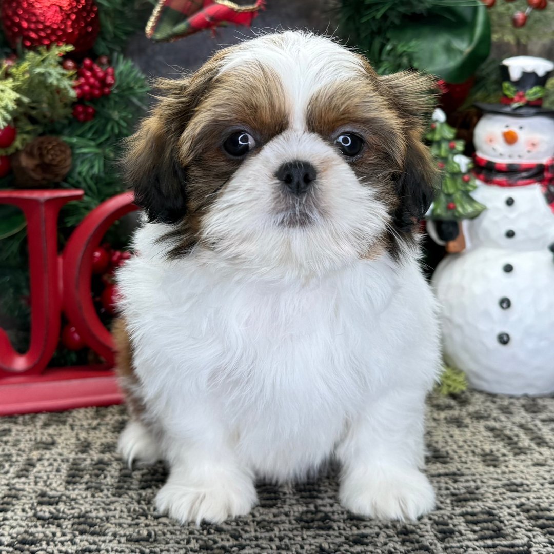 Shih Tzu Puppies For Sale. | I’m an 11-week-old male Shih Tzu with a beautiful brindle & white coat, I am ready now to plan my trip to my forever family. Once I reach my adult size, I’m expected to weigh between 10–14 lbs. I’m AKC registered. I absolutely love to have my tummy rubbed! I love it so much that I will melt in your arms while you do it.