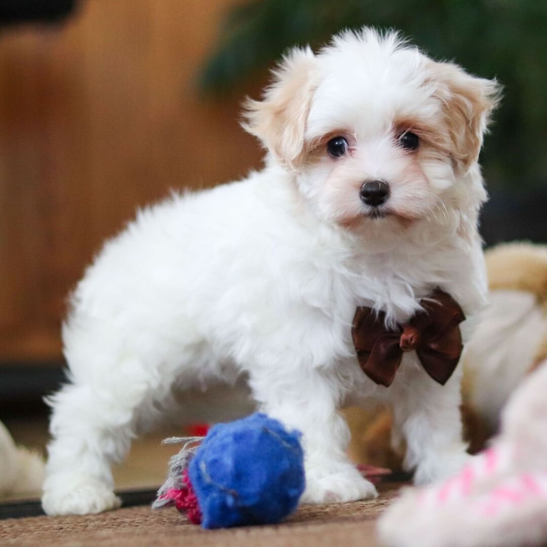Maltipoo Breeders | Hi, I’m Karter! I’m a 10-week-old male Maltipoo. My dad is a Poodle and my mom is a Maltese. I have a beautiful apricot coat. I am ready now to plan my trip to my forever family. Once I reach my adult size, I’m expected to weigh between 8–12 lbs. I’m excited to bring a lot of love and a little bit of puppy chaos | Maltipoo Breeders
