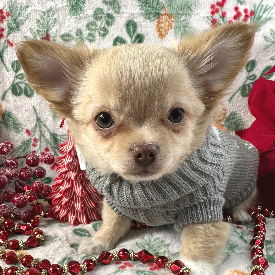 Teacup Chihuahua Puppies |Hi, I’m Kelce! I’m a 12-week-old male Chihuahua with a beautiful chocolate sabled fawn coat, I am ready now to plan my trip to my forever family. Once I reach my adult size, I’m expected to weigh between 6–7 lbs. I’m AKC registered. I’m all set to bring a little bit of joy and a lot of love. Teacup Chihuahua Puppies