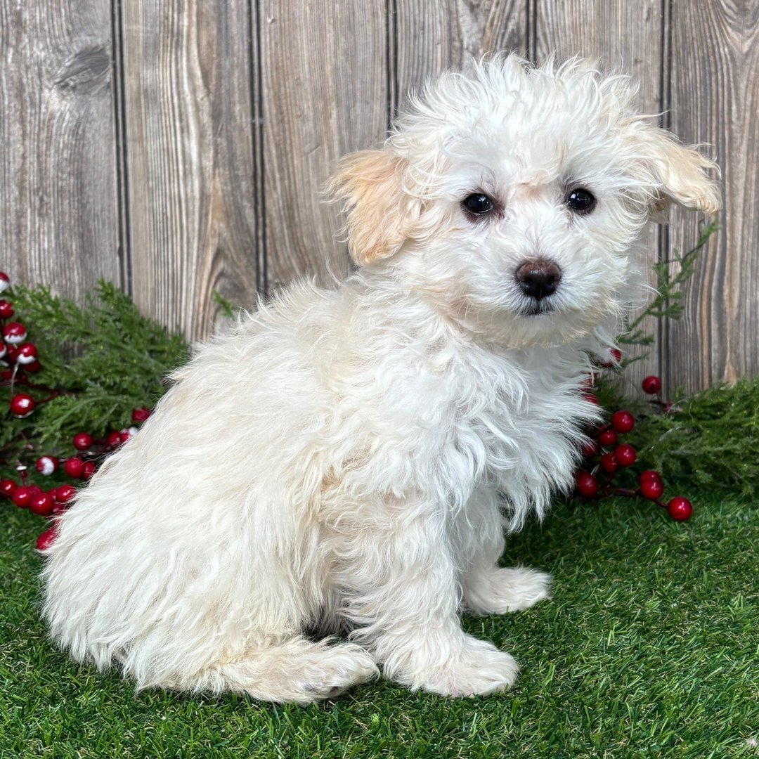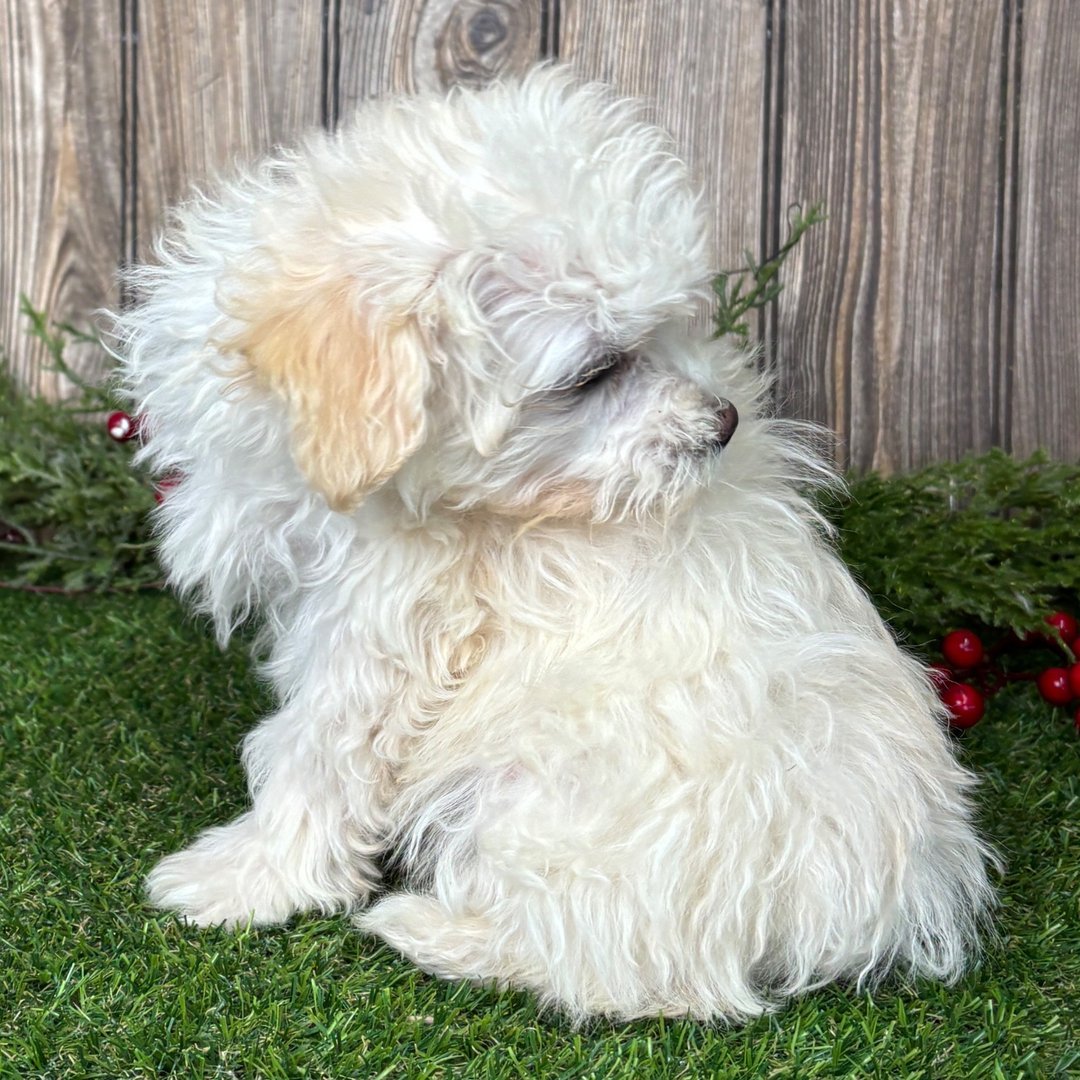 Toy Maltipoo For Sale | Hi, I’m Melvin! I’m a 11-week-old male Maltipoo. My dad is a Poodle and my mom is a Maltese. I have a beautiful cream coat, I am ready now to plan my trip to my forever family. Once I reach my adult size, I’m expected to weigh between 7–9 lbs. I’m a little ball of fluff with a big personality| Toy Maltipoo For Sale
